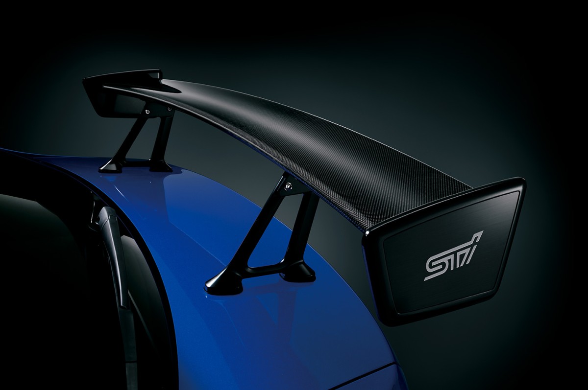 STIコンプリートカー「WRX S4 tS NBR CHALLENGE パッケージ」採用のドライカーボン素材のウィング型リヤスポイラー。