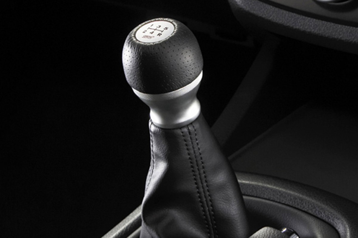 Рычаг переключения передач из натуральной кожи с алюминиевой вставкой и точечной текстурой. Оптимальные материалы, форма и вес подобраны с учётом тактильных ощущений при переключении.