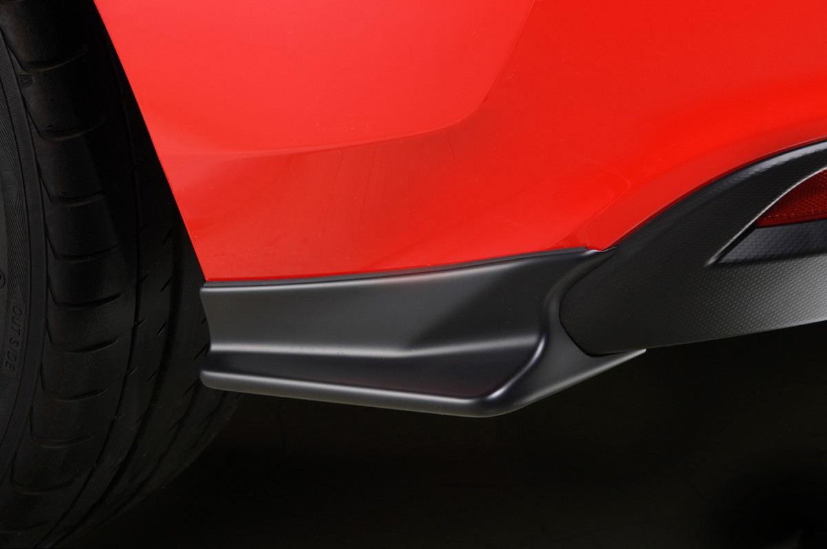 Аэродинамический элемент, который стабилизирует воздушный поток, проходящий от передней части вдоль боков кузова, повышая устойчивость автомобиля. Его функция заключается в отводе воздуха, который стремится проникнуть под днище и приподнять кузов, направляя его назад. Дизайн разработан с учетом совместной установки с отдельно продаваемыми «Передним нижним спойлером» и «Боковым нижним спойлером»; при одновременном монтаже обеспечивается оптимальная производительность.