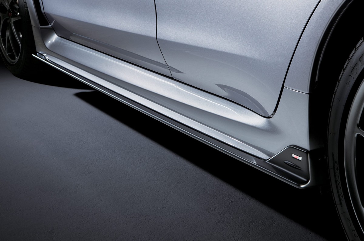 Аэродинамический элемент, который стабилизирует поток воздуха от передней части к боковине кузова, повышая устойчивость автомобиля. Выполняет функцию отвода воздуха, который стремится проникнуть под днище и приподнять кузов, направляя его назад. Разработан для совместной установки с отдельно продаваемым «Передним нижним спойлером»; при одновременном монтаже обеспечивает оптимальные характеристики.