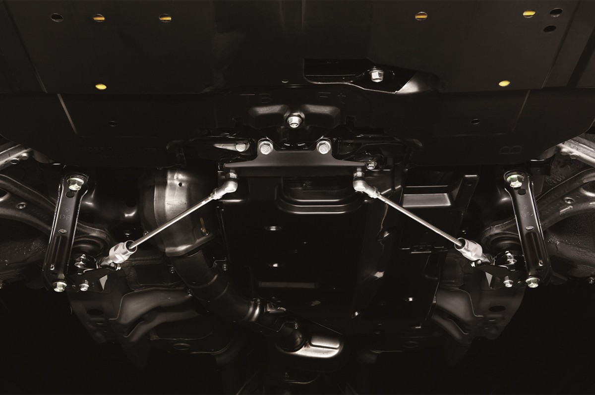Эксклюзивная спортивная деталь от STI, устанавливаемая между кузовом и поперечиной.